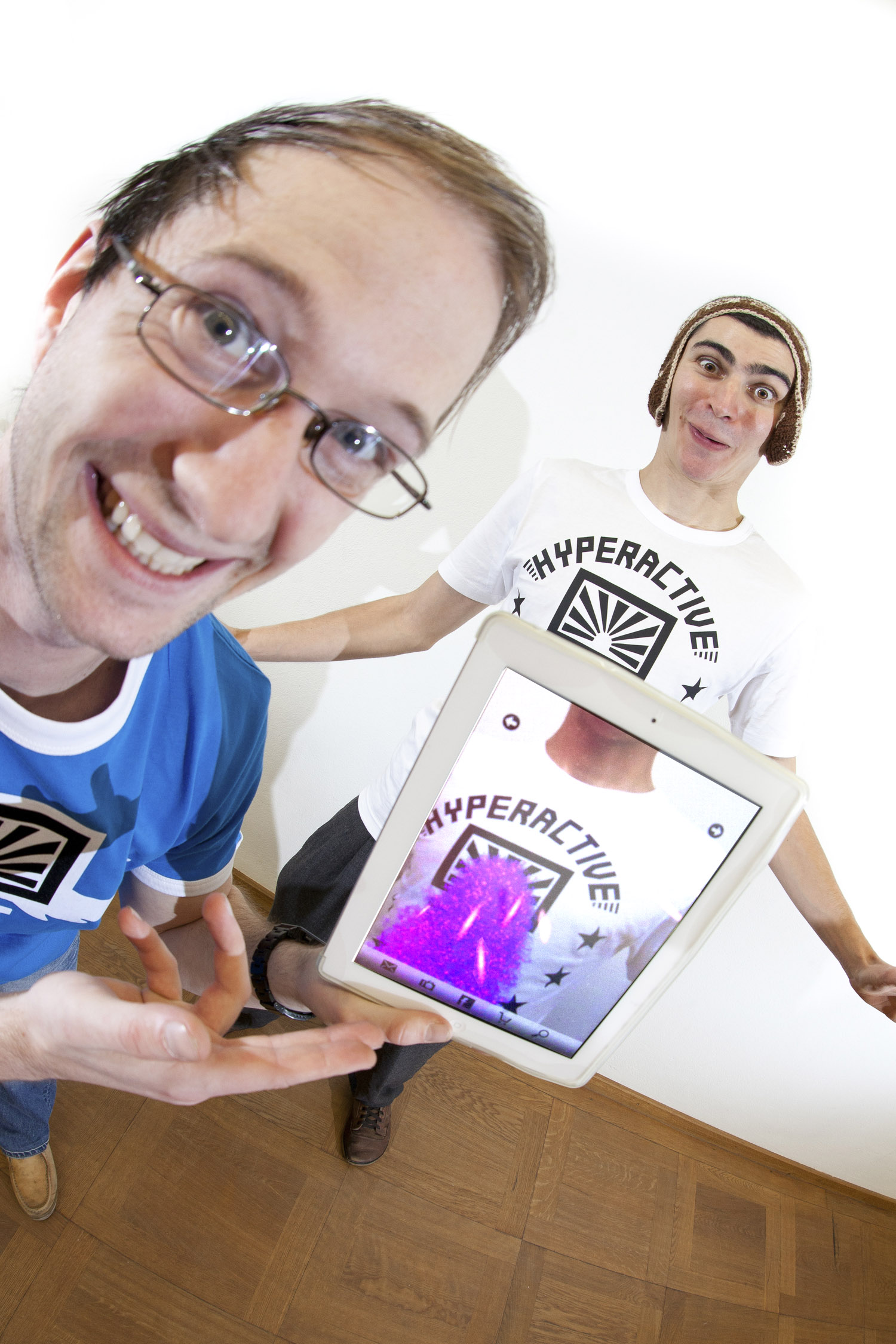 Nous sommes bien conscients que depuis de nombreuses années la plupart des boutiques proposent déjà des motifs plus ou moins intéressants, mais nous cherchons à proposer plus à nos clients. Notre but est que non seulement les porteurs de nos tee shirts les mettent en scène, mais que nos tee shirts soient au cœur d’une communication de groupe. En d’autres termes, nous pensons avoir trouvé un moyen grâce auquel plusieurs personnes peuvent percevoir différemment le même motif sur le même tee shirt. Un jour lors d’une conférence, nous avons découvert une technologie appelée Augmented Reality ou réalité augmentée en bon français. Cette technologie permet d’intégrer des objets non réels à un environnement existant réellement. Nous nous sommes alors dits, pourquoi ne pas faire la même chose avec des tee shirts ! Le motif du tee shirt est « augmenté » avec des objets en 3D et devient un véritable moyen de communication créant une interaction entre le porteur du tee shirt et le spectateur, pour lequel le porteur du tee shirt prend soudain une tout autre dimension. Le spectateur peut prendre en photo ce monde surréel, sans que le porteur du tee shirt puisse réellement savoir ce que l’autre voit sur l’écran de son iPhone ou de son iPad. Ils peuvent ensuite regarder les photos ensemble, s’étonner et souvent même sourire des situations conscientes ou non qui se sont créées durant la séance photo.