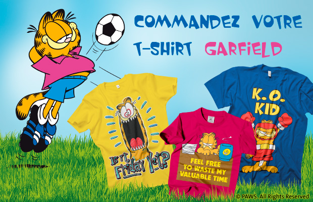 Choisissez votre illustration : plutôt t-shirt garfield humour, t-shirt garfield enfant ou t-shirt garfield odie ? De nombreux thèmes sont à votre disposition : football, karaté, bureau.