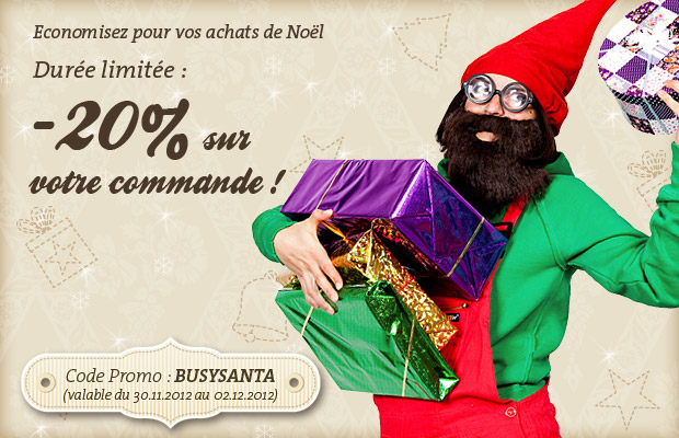 Comme nous sommes plutôt à l’écoute et que nous aimons aussi vous faire des cadeaux : Tadam ! Nous vous offrons 20 % de réduction sur toutes vos commandes durant ce week-end ! Utilisez le code coupon BUSYSANTA lors de l’achat de vos cadeaux personnalisés et épargnez 20 % (si c’est un cadeau pour vous-même, ça marche aussi !).