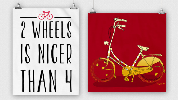C’est l’été (du moins sur le papier) et la saison du vélo bat enfin à nouveau son plein. Quoi de mieux que de sentir le vent dans ses cheveux et le frisson de la vitesse dans les descentes ? Plus de voitures, plus de bouchons, plus de métros bondés, vive la liberté du vélo ! Vous aussi, vous êtes fan de vélo ? Alors, découvrez ces designs :