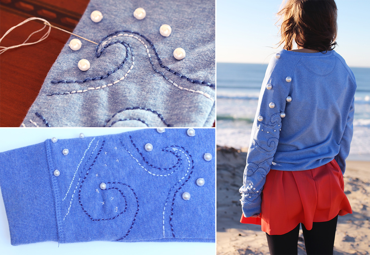 Nos séries de tutoriels DIY reviennent pour 2015, avec un tuto d’Astrid, du blog Sp4nk. Astrid nous a concocté un look frais pour nous rafraîchir après le chaos des fêtes de fin d’année : un sweat brodé et décoré de perles nacrées. Prête à pêcher des idées en ce début d’année 2015 ? Suivez le guide !