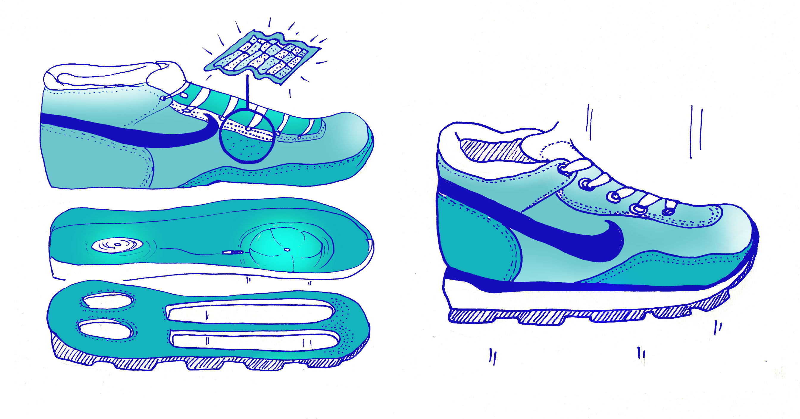 En 2045, l’hoverboard n’intéresse plus personne. Car il existe maintenant des chaussures capables de nous faire avancer sans le moindre effort. Après des années de recherches, les chercheurs ont déjoué les lois de la gravitation. Bien sûr, ses supers pompes dépourvues d’adhérence au sol, sont disponibles en différents modèles. Qu’elles aient un look sportif ou ultra-chic, pour plus de sécurité, ces chaussures sont équipées de lumières intégrées.