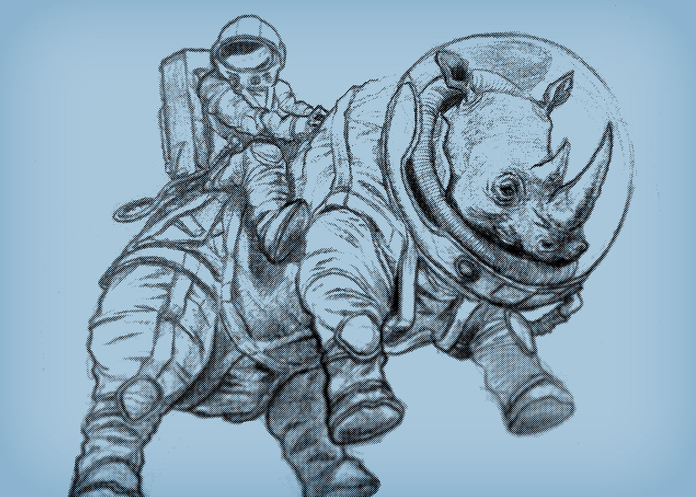 « Avec sa corne au bout du nez, et son armure de chevalier », il est clair qu’en traversant l’univers sur un tel colosse, les Martiens, c’est de la rigolade à côté. Et si les rhinocéros étaient l’avenir de la conquête de l’espace ? « Spacerhino55 » d’Edison Wormhole.