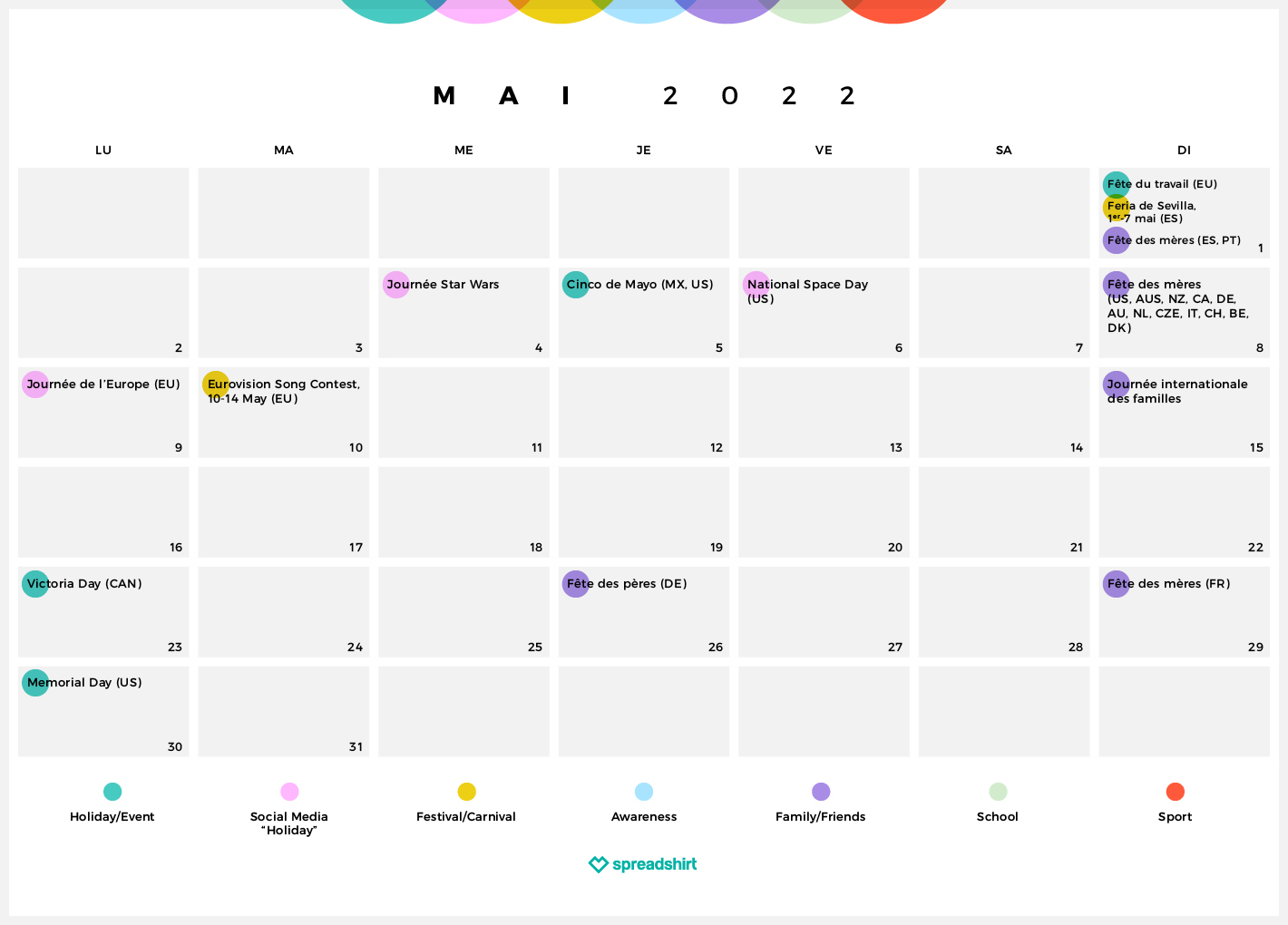 Vous cherchez l’inspiration pour vos nouvelles créations ? Vous êtes plutôt Journée internationale des frères et sœurs le 10 avril ou Journée mondiale du cannabis le 20 avril ? Piochez les occasions qui vous plaisent.