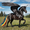 Sticker taille S (10 x 10 cm)Alicorne noire arc-en-ciel